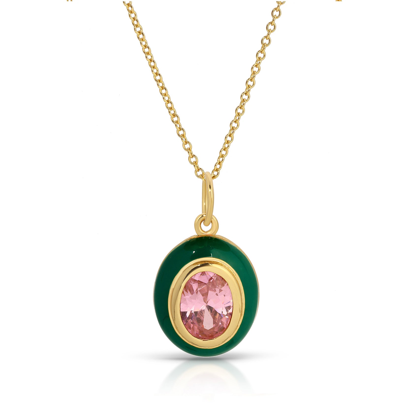 Add a pop of playful glam with this oval charm featuring green enamel and a sparkling simulated pink spinel.