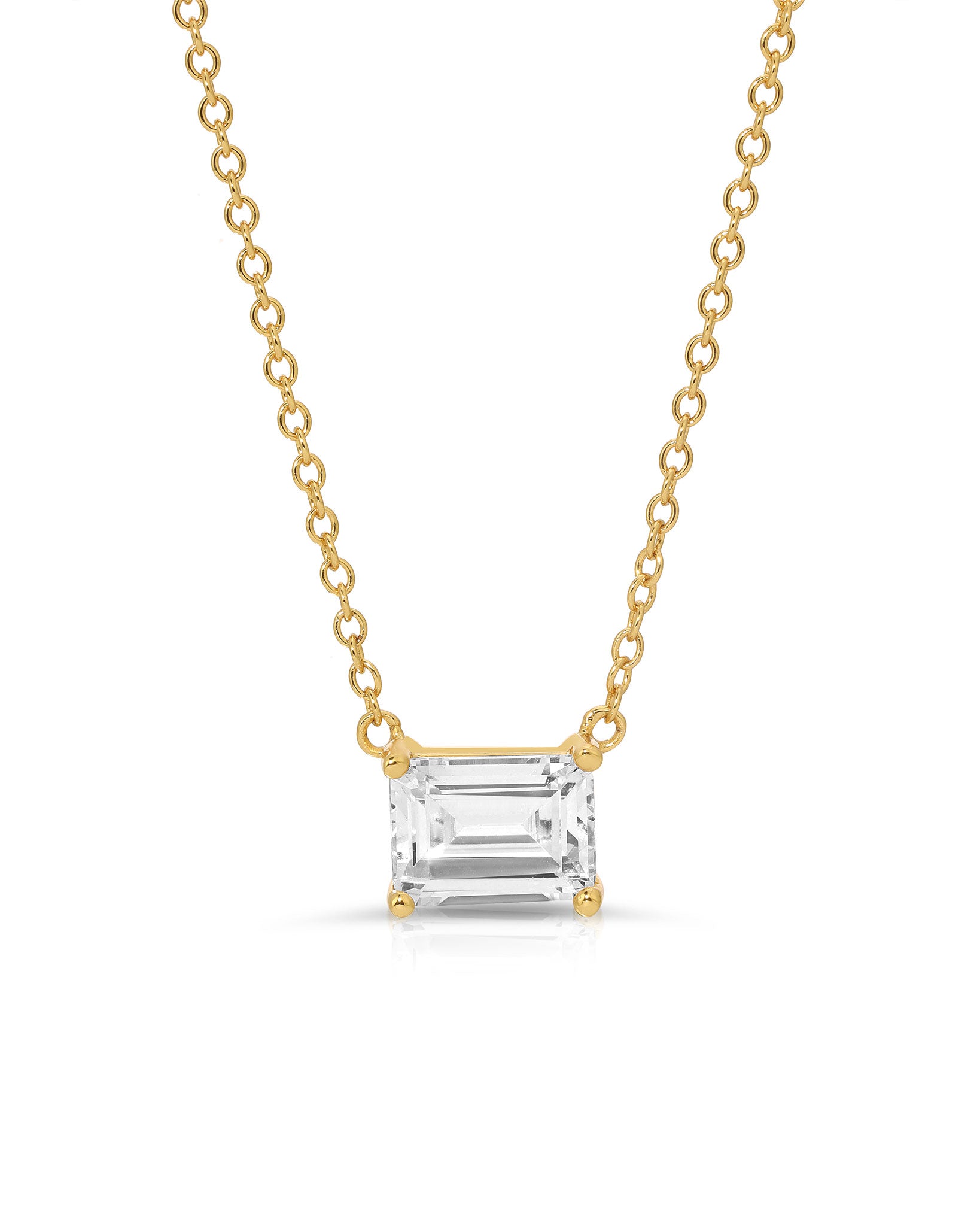 This necklace features a dainty CZ emerald cut pendant, perfect for wearing solo or adding to your layered look.
