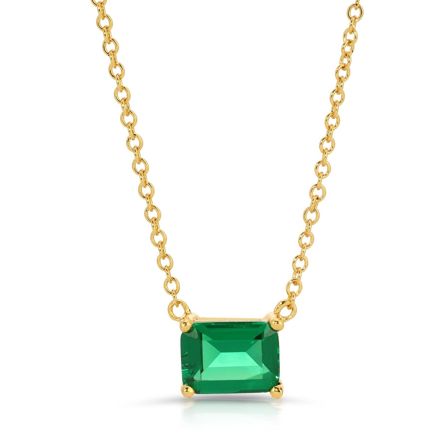 Bling Emerald Cut Solitaire Pendant Necklace - Emerald