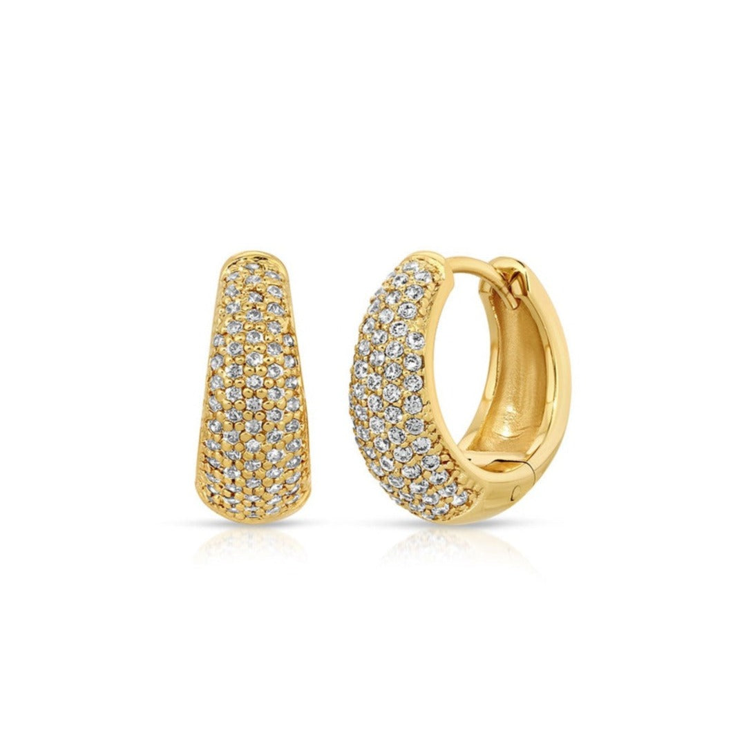 These glamorous pave design hoop earring pair elevates your everyday looks