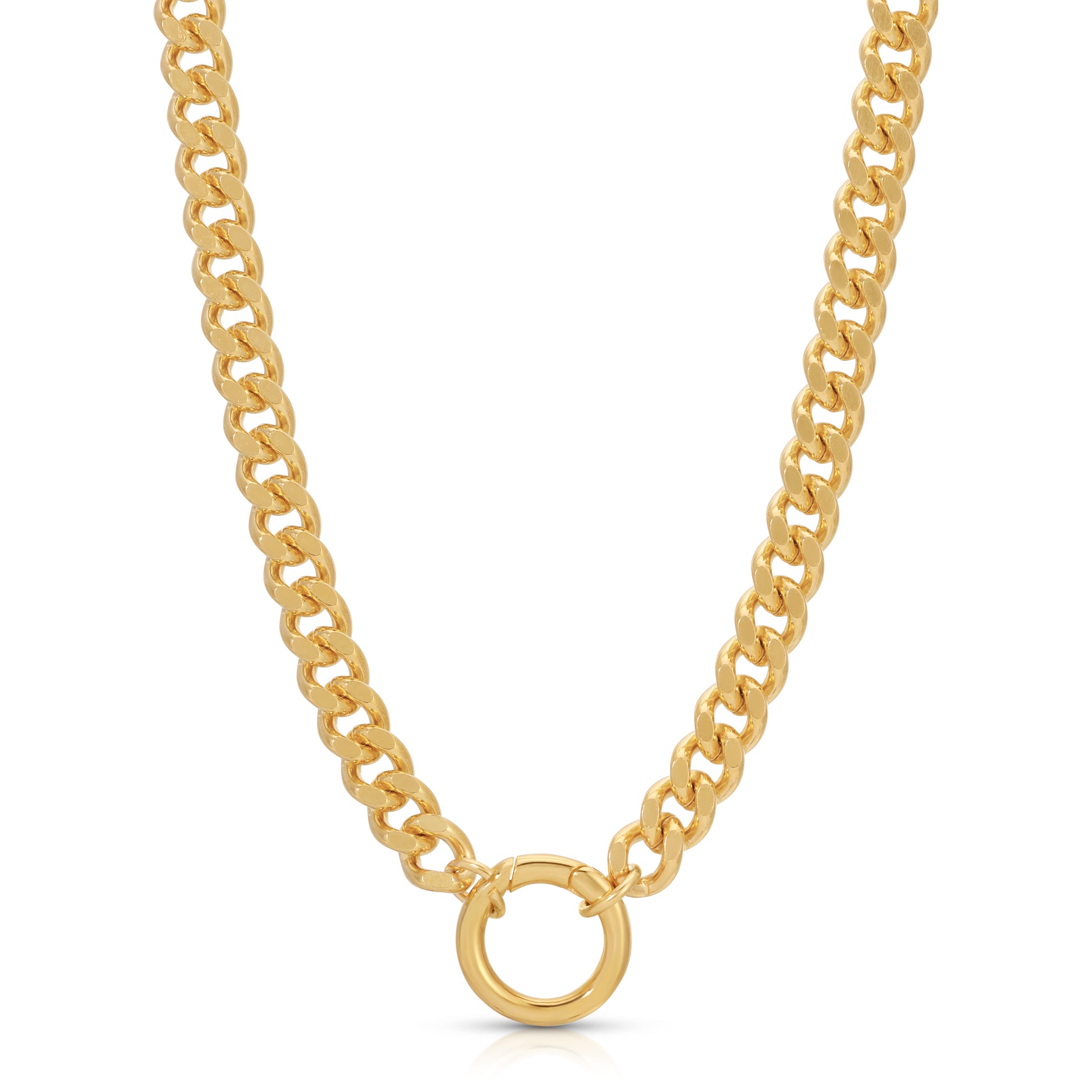 Cuban link chain necklace with a cheeky circle clasp, ready to hold all your favorite charms in style.