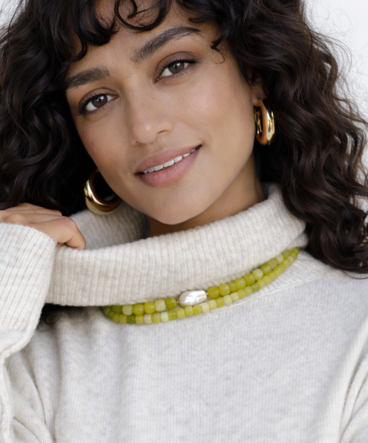 This beaded necklace features 5-6mm genuine Lemon Jade Quartz and a circle clasp, making it the perfect playful base for your favorite charms.
