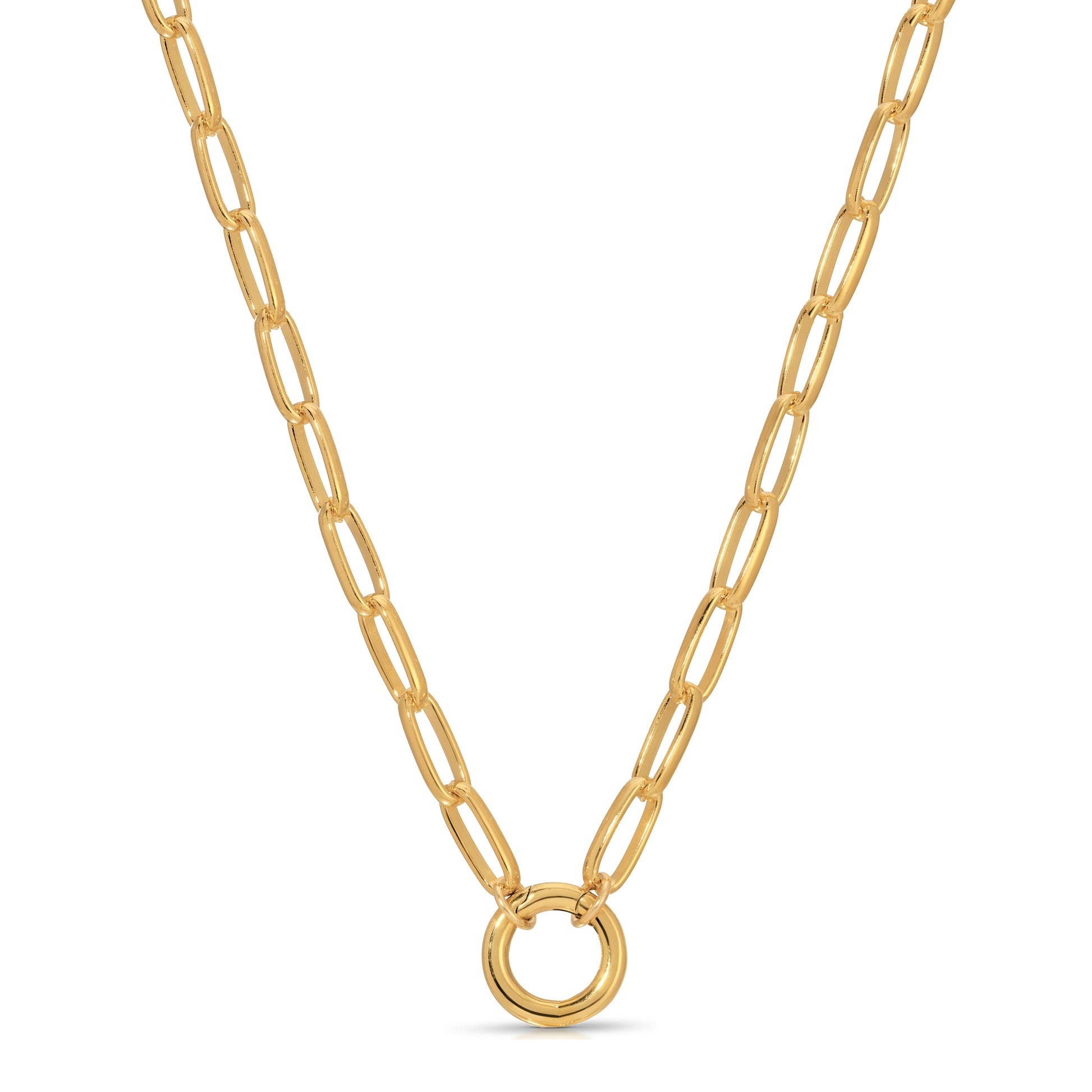 Necklace featuring a trendy paperclip link chain and a fun circle clasp, perfect for showing off your favorite charms with a little extra flair.