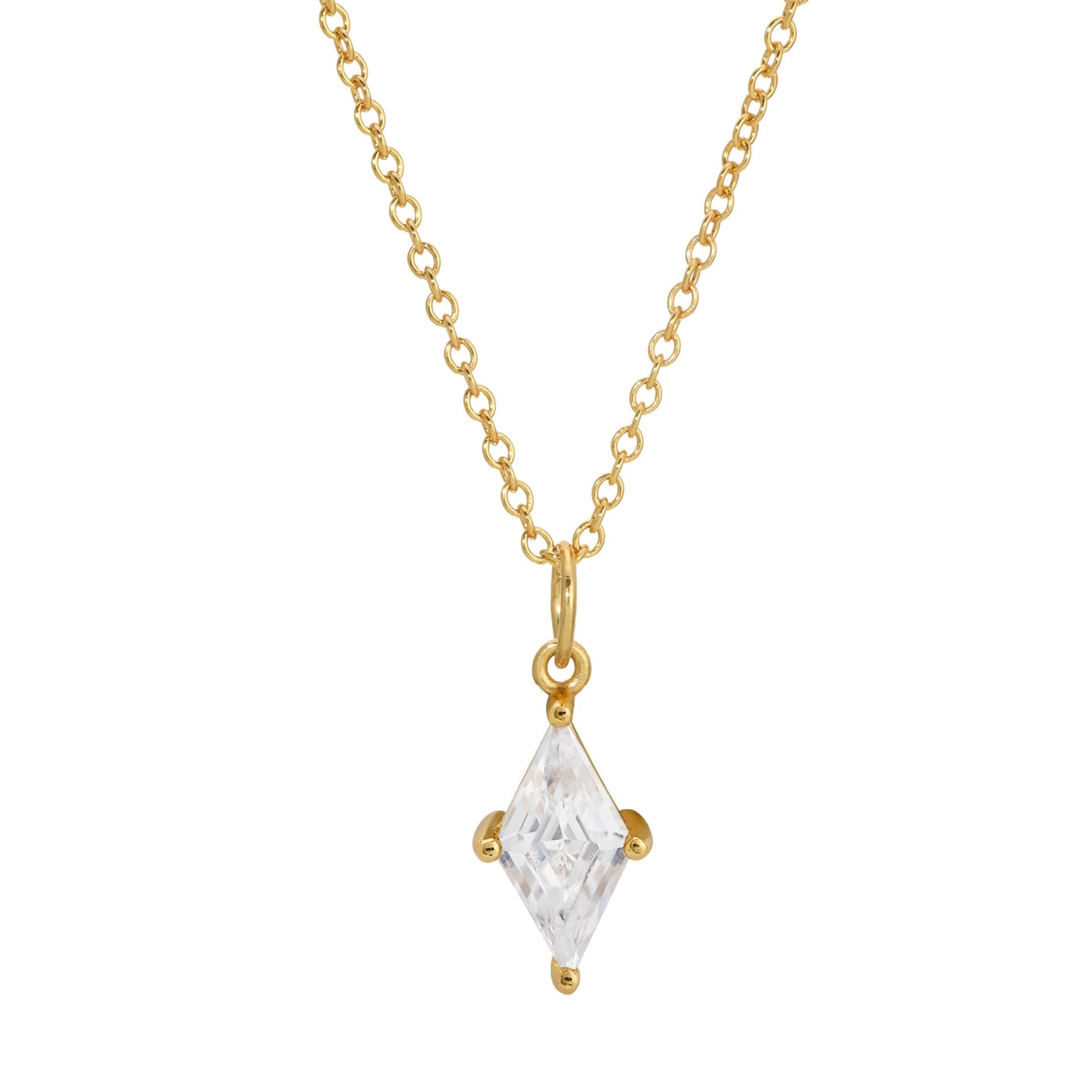 Upgrade your necklace game with this 18K gold plated eco-brass piece, featuring a playful kite CZ charm measuring 13.5 MM. Perfect for adding a touch of shine to any outfit, this 16"-18" adjustable necklace is a must-have accessory.