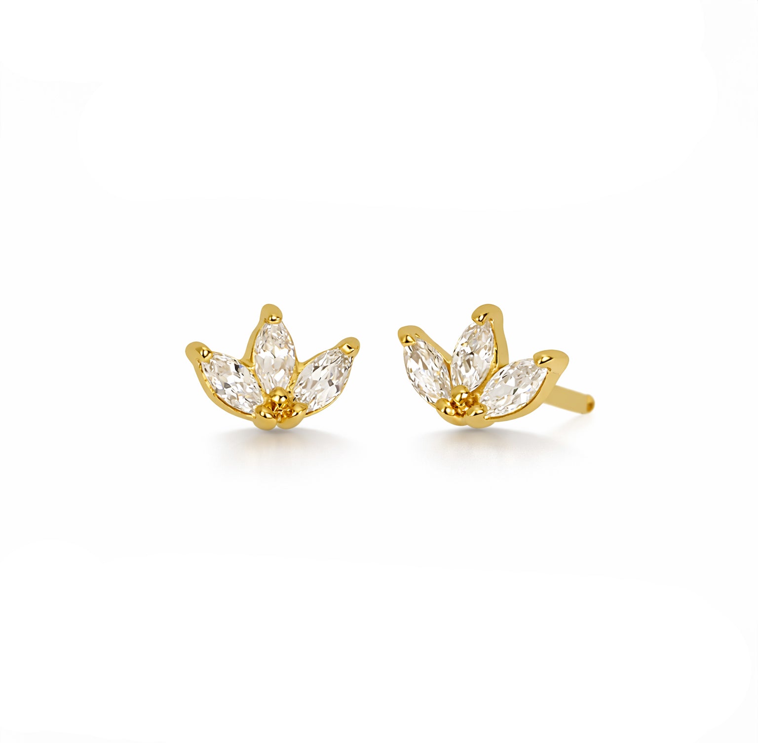 Feelin' fancy? Add our Era art deco inspired stud earrings to your jewelry collection. Featuring 3 white marquise cz's prong set in 18k gold plated brass.