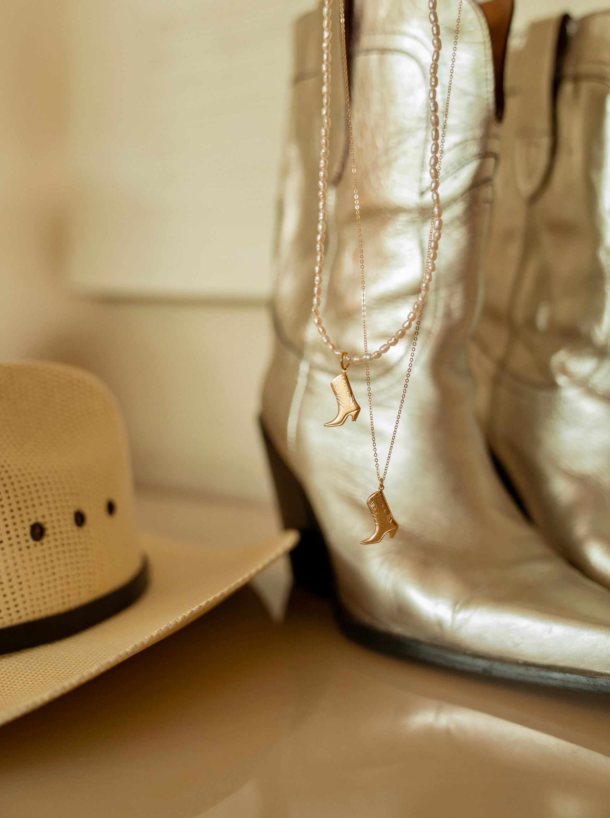 Materials: 16"-18" Necklace with large Cowgirl boot; 14K Gold filled.