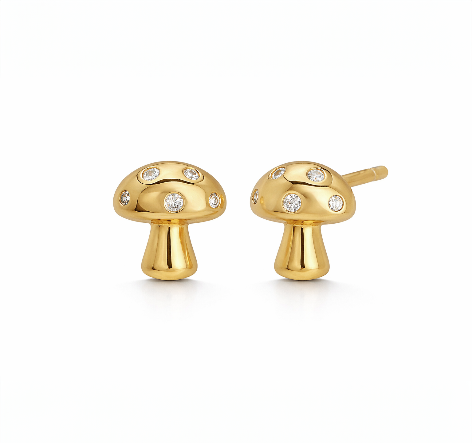 Take a journey with our Lil Trip stud earrings. Featuring a mushroom design adorned with bright white cz stones!