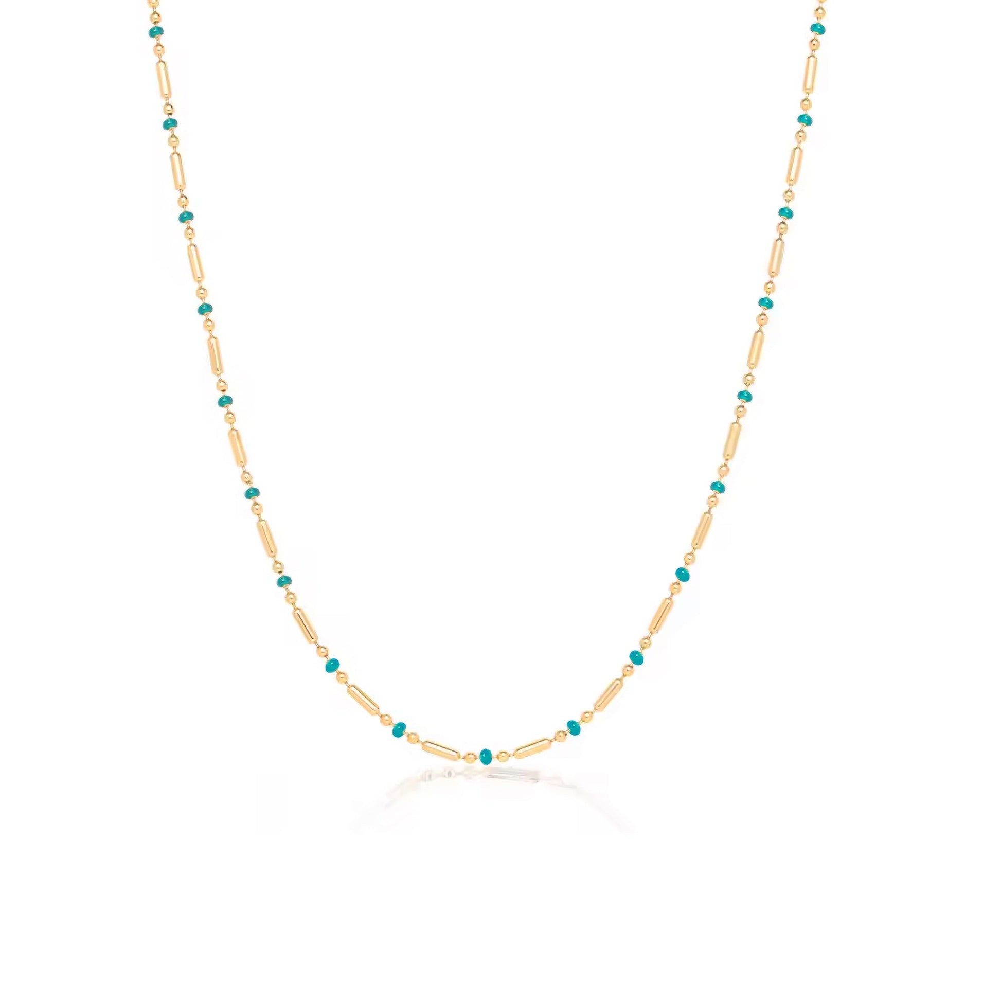 Add a pop of color to your jewelry collection with this enamel mixed color ball chain necklace. Made with 18K gold plated stainless steel, this 16" + extension necklace is sure to add a touch of fun and playfulness to any outfit.